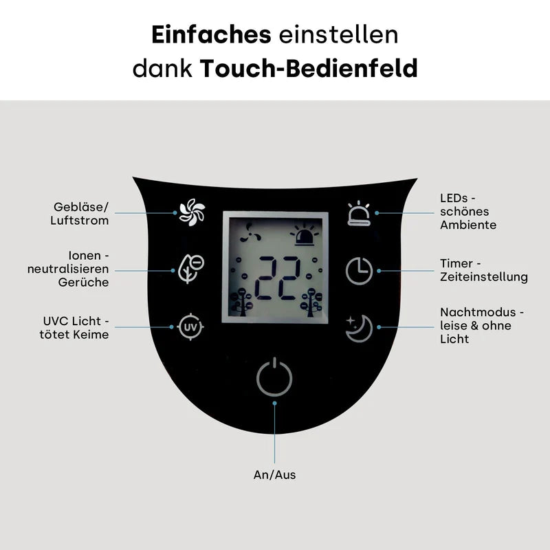 Bitte beachten Sie, dass der Ionen Luftreiniger auf höchster Stufe (3), eine Lautsärke von 47 dB erreicht.