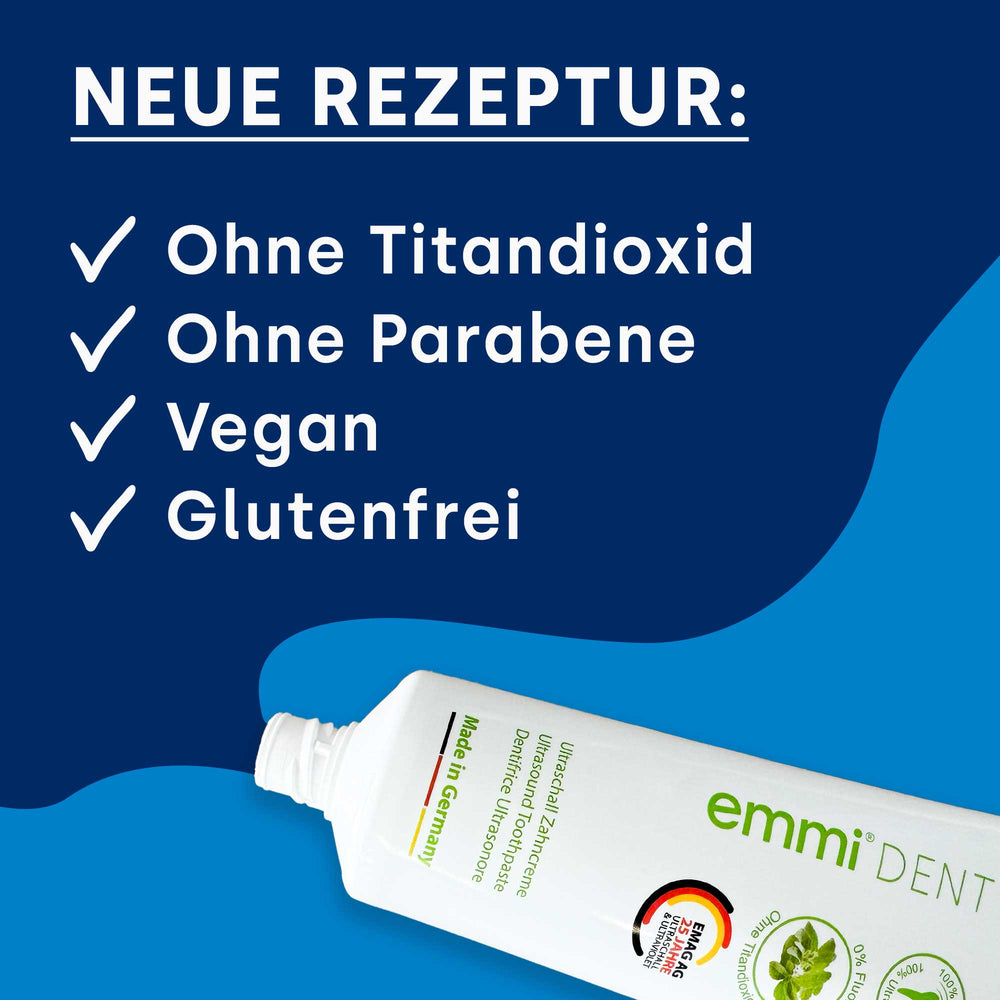 Bei emmi-dent legen wir großen Wert auf Qualität und Natürlichkeit. Unsere Nature Ultraschall Zahnpasta enthält sorgfältig ausgewählte natürliche Inhaltsstoffe, die Ihre Zähne effektiv pflegen und schützen. Vertrauen Sie auf emmi-dent und genießen Sie die Vorteile einer hochwertigen Zahnpflege ohne Fluorid und Titandioxid.
