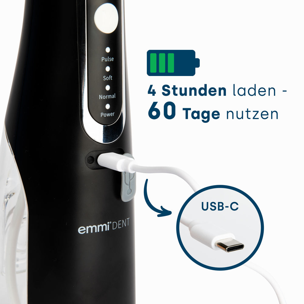 Mit einer beeindruckenden Akkulaufzeit von bis zu 15 Tagen bei zweimal täglichem Gebrauch überzeugt die emmi-dent Slim, sodass häufiges Aufladen entfällt. Eine praktische Akku-Ladeanzeige zeigt Ihnen immer den aktuellen Ladestatus an, und dank der Kompatibilität mit nahezu jedem induktiven Ladegerät ist das Aufladen besonders unkompliziert.