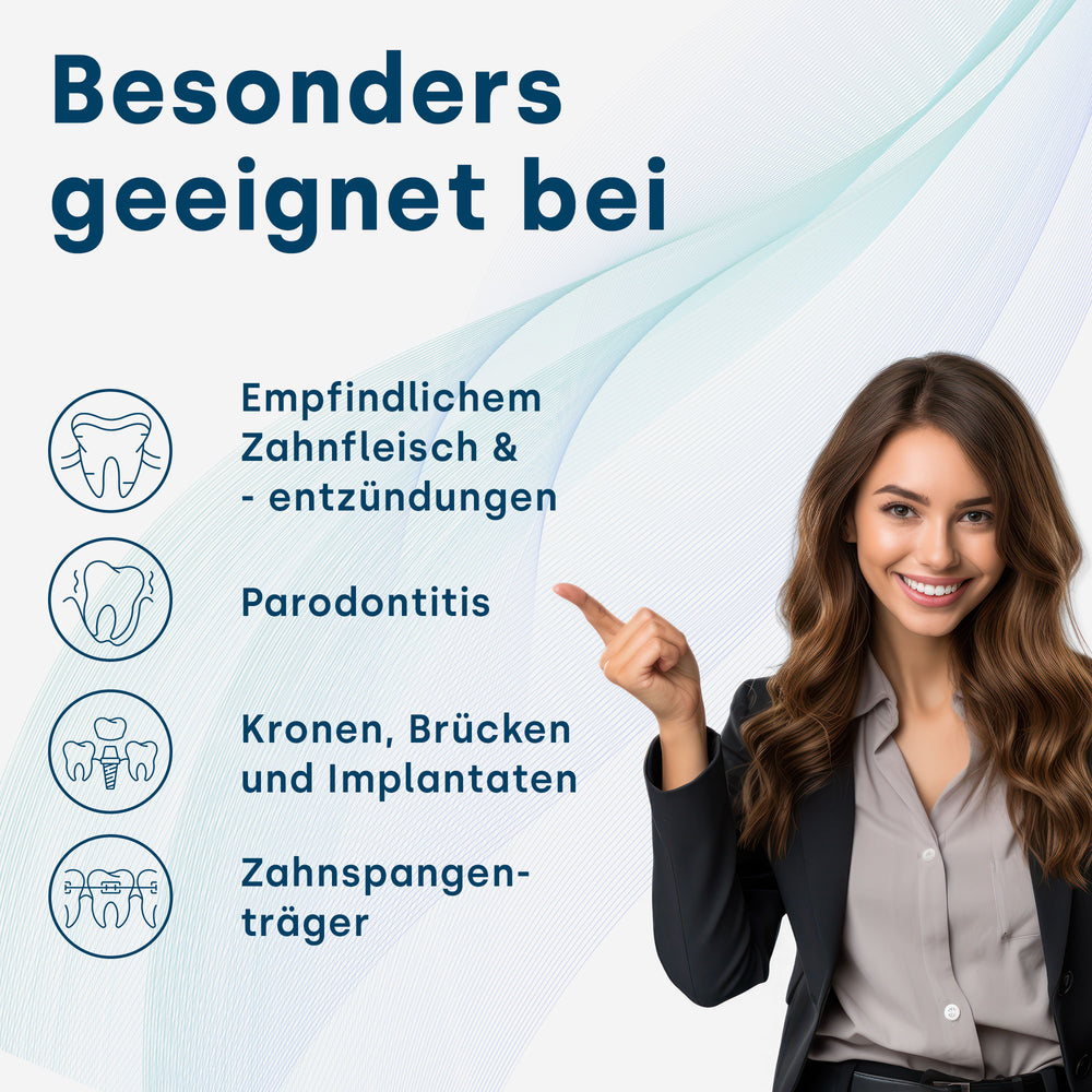 • „Verhindert vollständig das Risiko von Bürstschäden an Zähnen und Zahnhälsen“