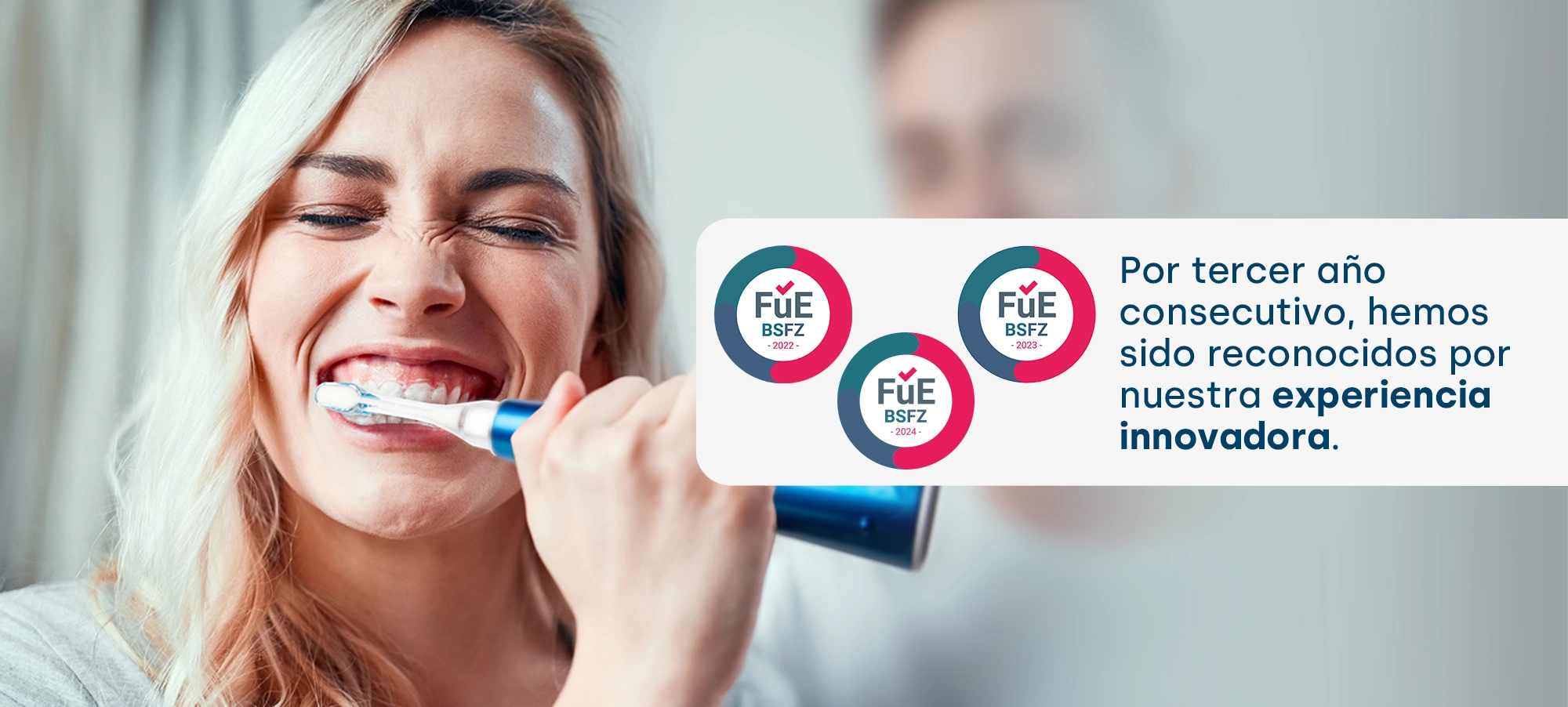 Hemos desarrollado un cabezal de cepillo especial para personas que usan aparatos ortopédicos. Las vibraciones ultrasónicas limpian en profundidad incluso las zonas inaccesibles entre los dientes y los aparatos. Las personas con implantes dentales también se benefician del máximo rendimiento de limpieza de la innovadora tecnología de ultrasonidos.