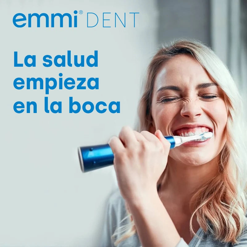 El cepillo de dientes ultrasónico emmi®-dent ofrece un efecto que no se puede conseguir con ningún otro método. Las técnicas de cepillado dental anteriores funcionaban sobre la base de la llamada macrolimpieza, que con movimientos mecánicos alcanzaba hasta 30.000 vibraciones por minuto. Con la tecnología de ultrasonidos prácticamente sin contacto, este valor se puede triplicar. Esto permite limpiar con precisión incluso las zonas de difícil acceso. Las ondas ultrasónicas llegan incluso a las zonas de difícil acceso sin esfuerzo, garantizando una higiene bucal integral . Gracias a su alta frecuencia, los cepillos de dientes ultrasónicos también son ideales para el cuidado bucal con brackets, coronas o implantes.