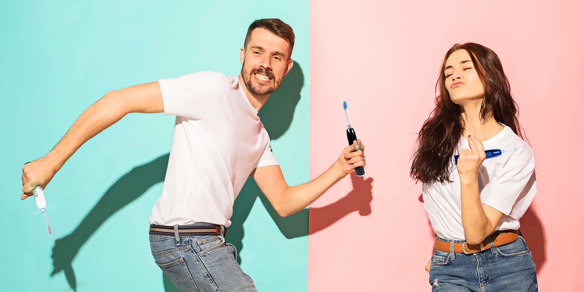 Una prueba comparativa de diferentes modelos eléctricos realizada por Stiftung Warentest demostró que las variantes con cabezales redondos giratorios no son superiores a los cepillos acústicos. Lo que tienen en común todos los modelos convencionales, como los cepillos de dientes manuales o eléctricos, es que “frotan” mecánicamente los dientes con una presión más o menos alta. Se frotan sobre las superficies de los dientes, lo que puede provocar daños en el esmalte dental o en las encías si no se utilizan correctamente.
