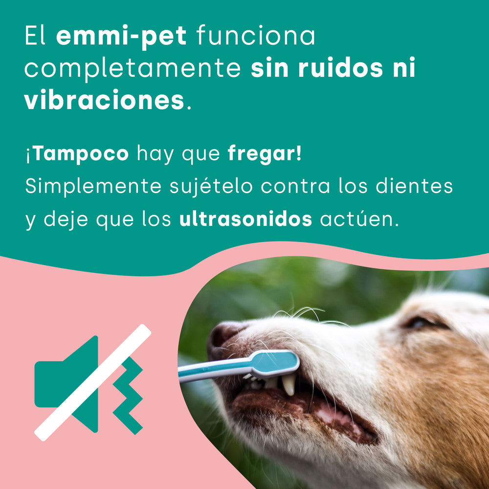 Con el uso regular, el animal se acostumbra rápidamente al cepillo de dientes ultrasónico. Para prevenir el sarro, la gingivitis y enfermedades posteriores, recomendamos el uso regular del cepillo dental ultrasónico emmi-pet 2.0 . Esto también le proporciona al animal un aliento notablemente más fresco.