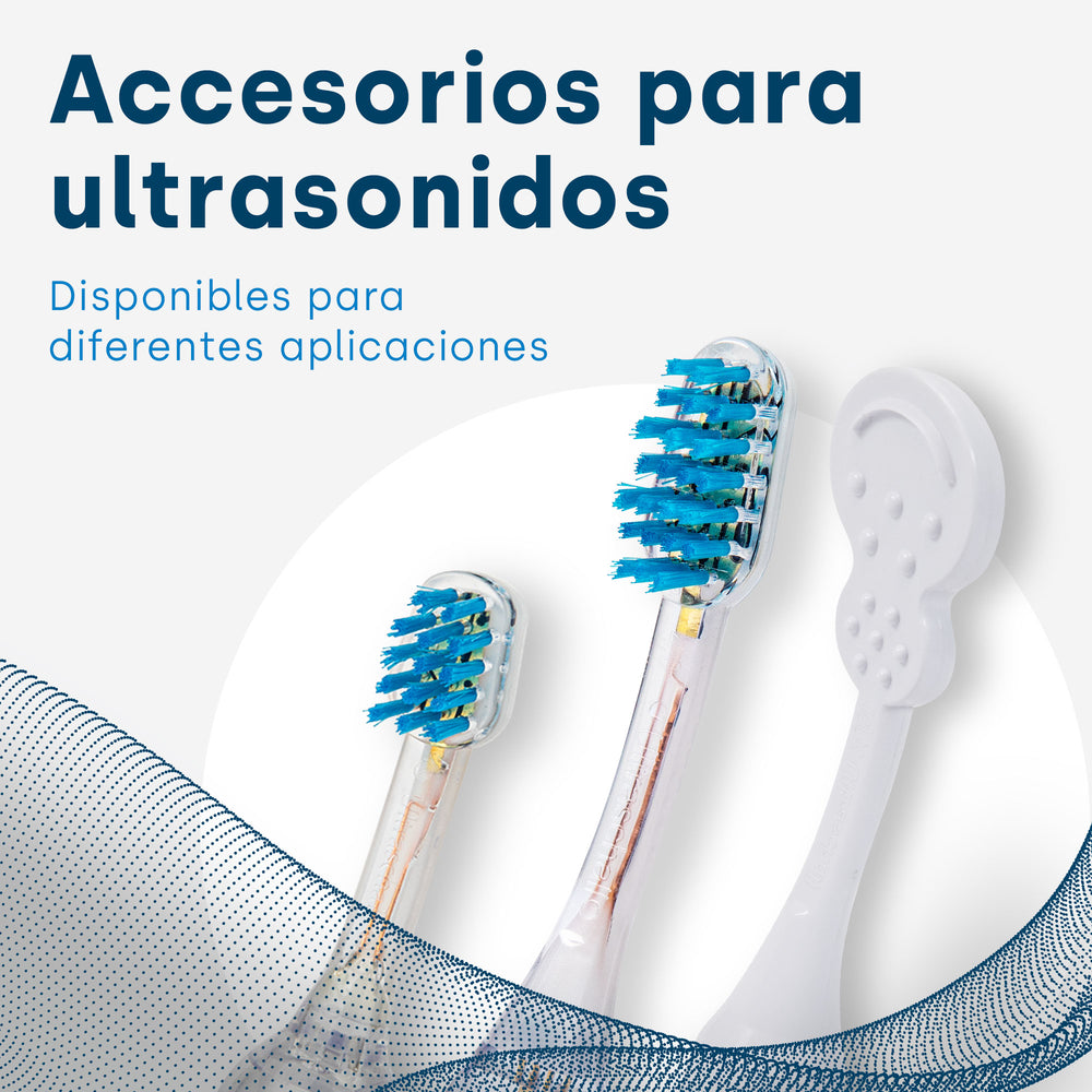 Los ultrasonidos reducen las bacterias, incluso en las bolsas de las encías, reducen el mal aliento y llegan también a lugares de difícil acceso: espacios interdentales, reducción de bacterias, para usuarios de brackets, implantes, etc...