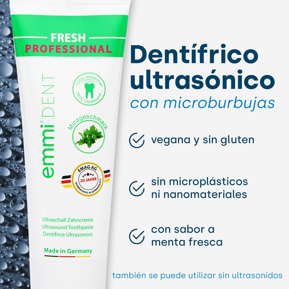 Contrariamente a la creencia popular, los cepillos de dientes ultrasónicos son inofensivos para la salud humana. Numerosas investigaciones y estudios han demostrado que el uso de cepillos de dientes ultrasónicos no provoca efectos nocivos ni desventajas para la salud. Los cepillos de dientes ultrasónicos originales, como nuestros modelos emmi-dent, están especialmente diseñados para una limpieza dental profunda, suave y sostenible sin comprometer la salud bucal.