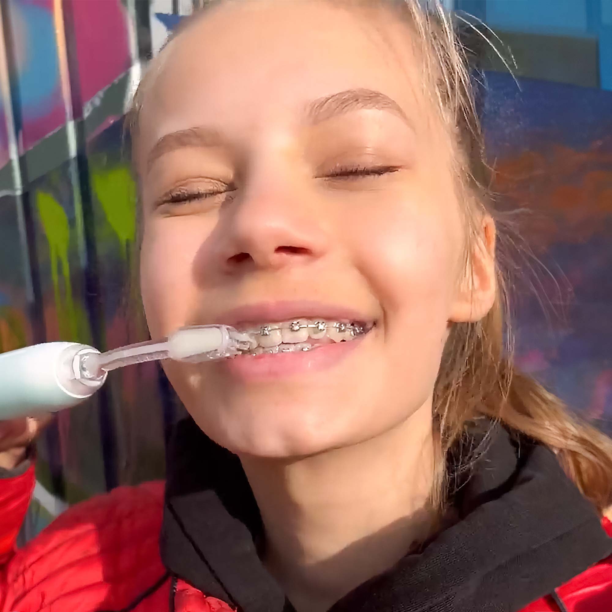 6 : C'est parti – maintenez-le sur chaque dent ou sur plusieurs dents pendant 6 secondes et amusez-vous à vous brosser les dents sans frotter !