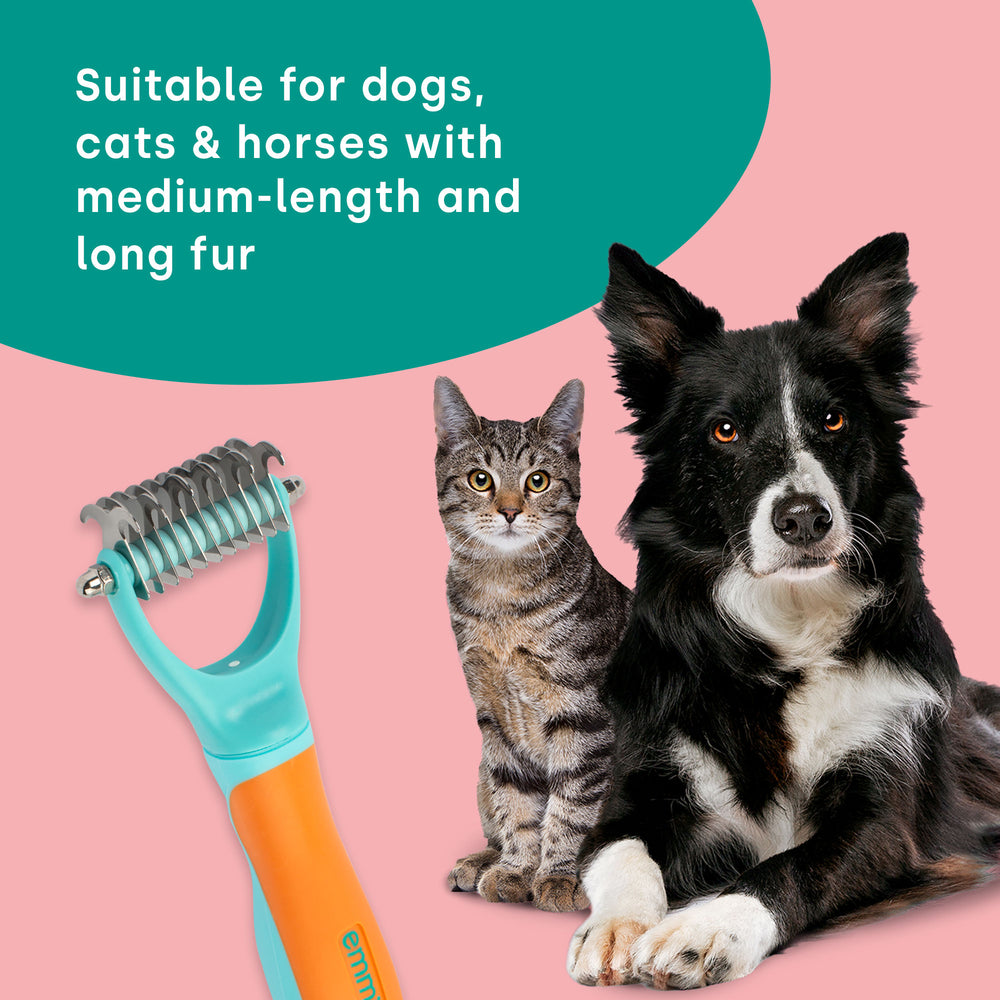 Le sous-poil en particulier peut être sujet à la formation de nœuds et peut être un lieu privilégié pour l'infestation parasitaire. Avec la brosse sous-poil d'emmi-pet, nous vous proposons une solution efficace pour lutter contre ces problèmes et prendre soin de manière optimale du pelage de votre compagnon à quatre pattes.