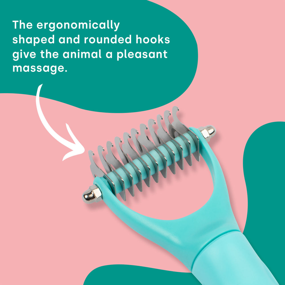 Pendant la saison de la mue et lorsque les niveaux de pollen et de poussière sont élevés, un toilettage minutieux est essentiel. Le peigne pour chat et chien emmi-pet pénètre en profondeur dans le pelage supérieur grâce à ses bords en acier inoxydable, éliminant en douceur le sous-poil et les nœuds sans endommager la peau. La brosse sous-poil convient aux petits animaux jusqu'aux grands chevaux et transforme le soin du pelage en un programme de bien-être relaxant.