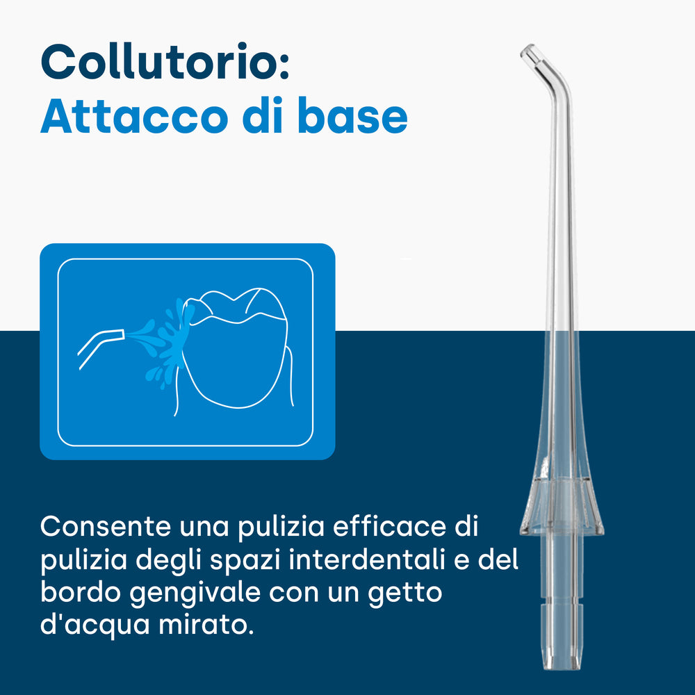 Adatto per la pulizia quotidiana dei denti, più efficace del filo interdentale, più sano per le gengive. Colonna d'acqua pulsata ultra-fine, penetra in profondità negli spazi tra i denti, nelle scanalature e nelle gengive inferiori. Pulisce la superficie dei denti e rimuove i residui di cibo.