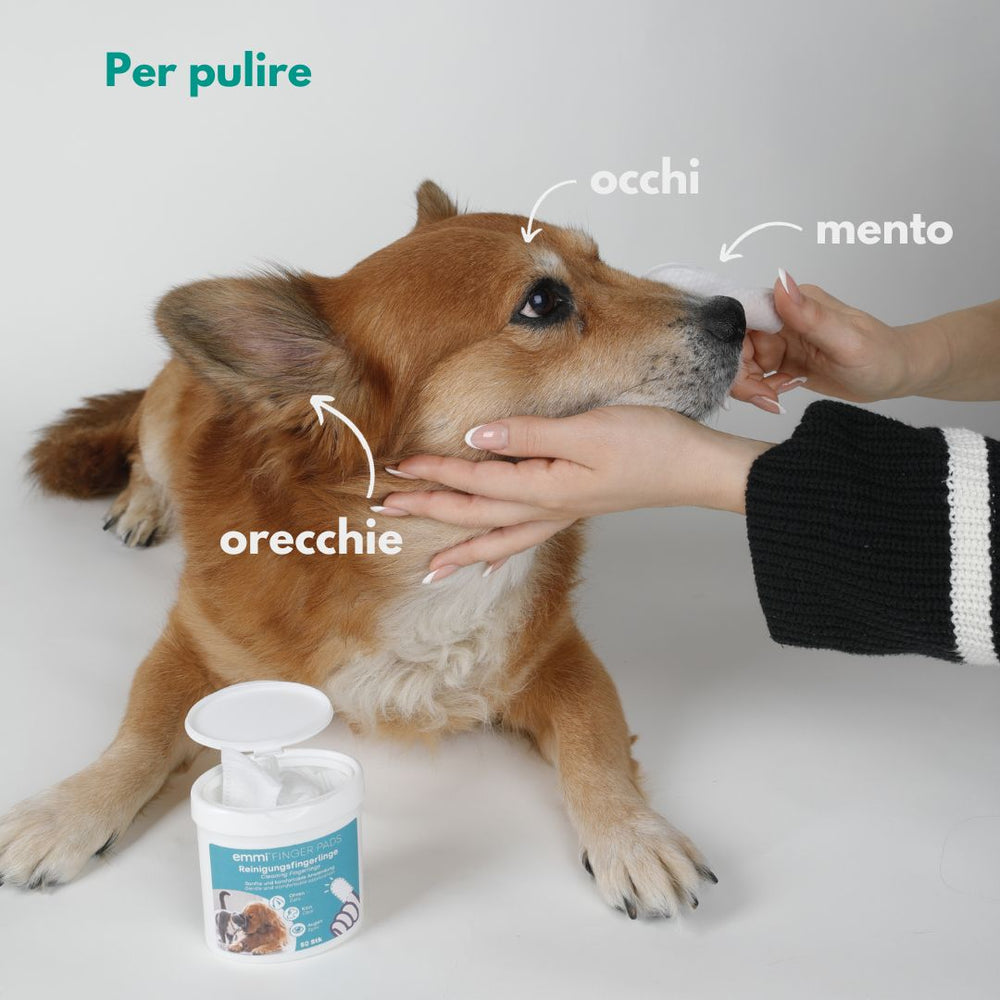 Scopri i nostri innovativi lettini per la pulizia delle dita emmi-pet per animali domestici, appositamente progettati per facilitare la cura di orecchie, mento e occhi. Le ditali di alta qualità realizzate in morbido tessuto non tessuto puliscono efficacemente lo sporco e aiutano il tuo amato animale domestico a rimanere pulito. Grazie alla superficie morbida dei panni per la pulizia, le zone sensibili vengono pulite a fondo.
