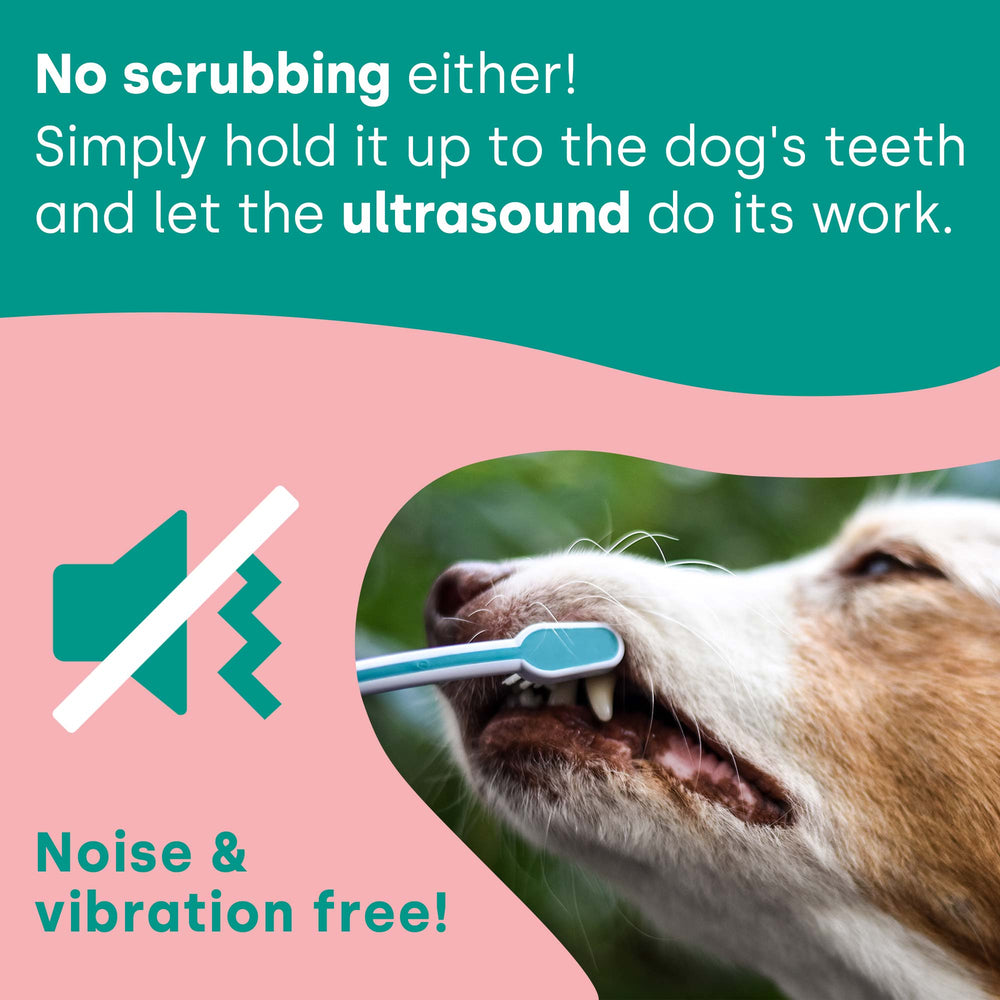 The improved ultrasonic toothbrush not only thoroughly removes plaque and biofilm, but also reduces gingivitis and strengthens your pet's gums for the long term. Thanks to the optimized technology, cleaning is even more effective - and all without scrubbing.