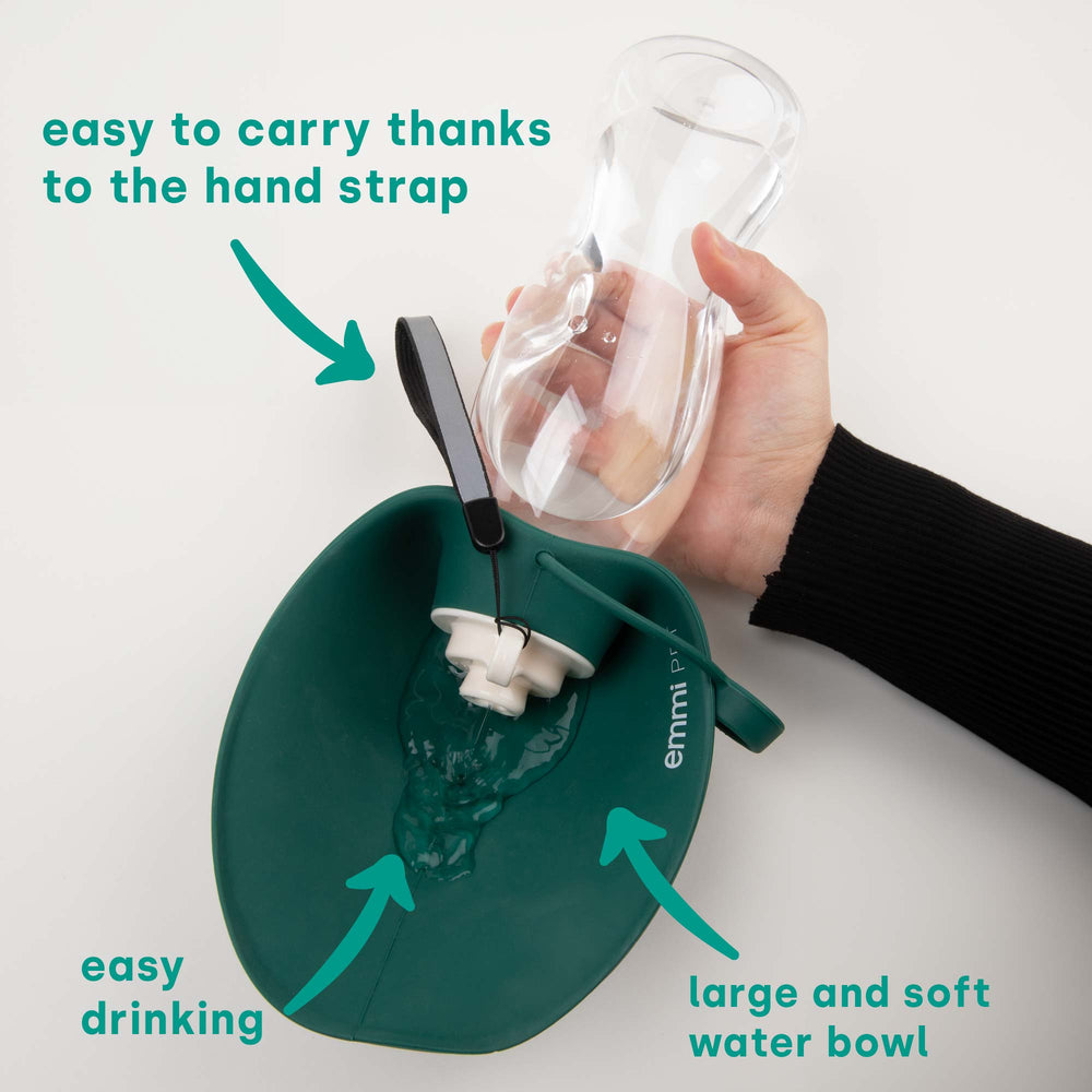 Dogs need a lot of water, especially when they're physically active or in hot weather. When traveling or on a walk, it's sometimes difficult to provide your four-legged friend with fresh water. It's not surprising if your pet gets thirsty and drinks from puddles or ponds. However, this water can contain germs and lead to digestive problems. That's why the emmi-pet dog water bottle is the ideal solution for traveling. With this travel water bottle, you'll always have plenty of water at hand.