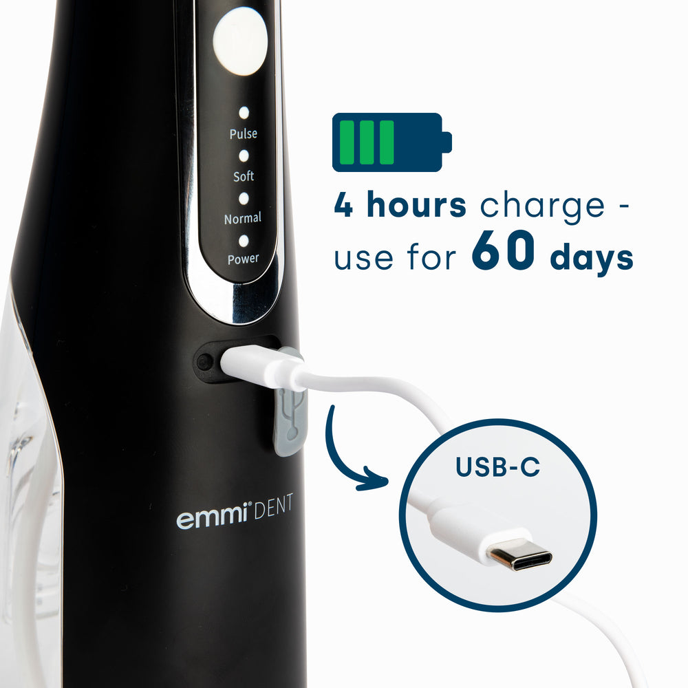 The emmi-dent Slim has a claimed battery life of 14 days. The practical charging indicator keeps you constantly informed of the current battery level.