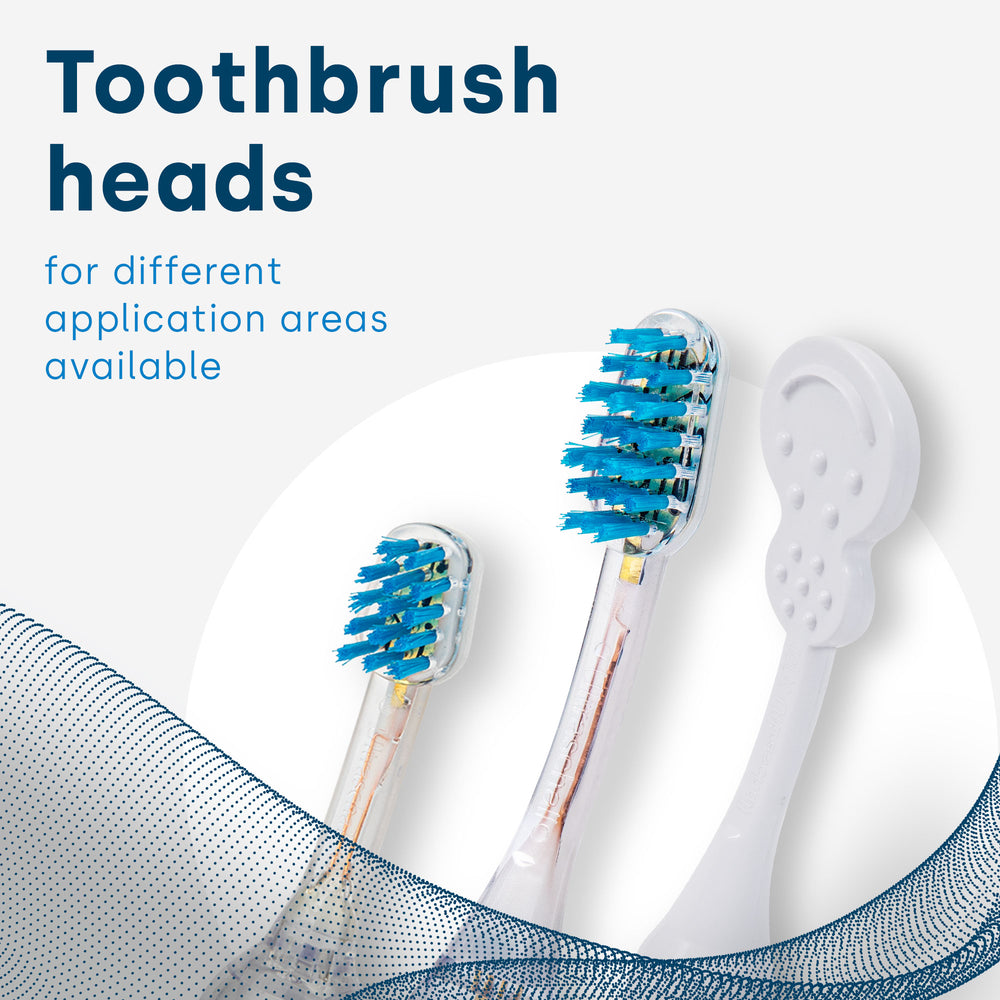 These heads are designed with smaller bristles to effectively clean even hard-to-reach areas. With their compact size and precise cleaning capabilities, the small heads ensure thorough oral hygiene for children and people with small jaws/mouths, promoting a healthy and clean mouth. They are the ideal choice for parents who want to offer their children a gentle and effective cleaning experience, even in the most difficult areas of their mouth.