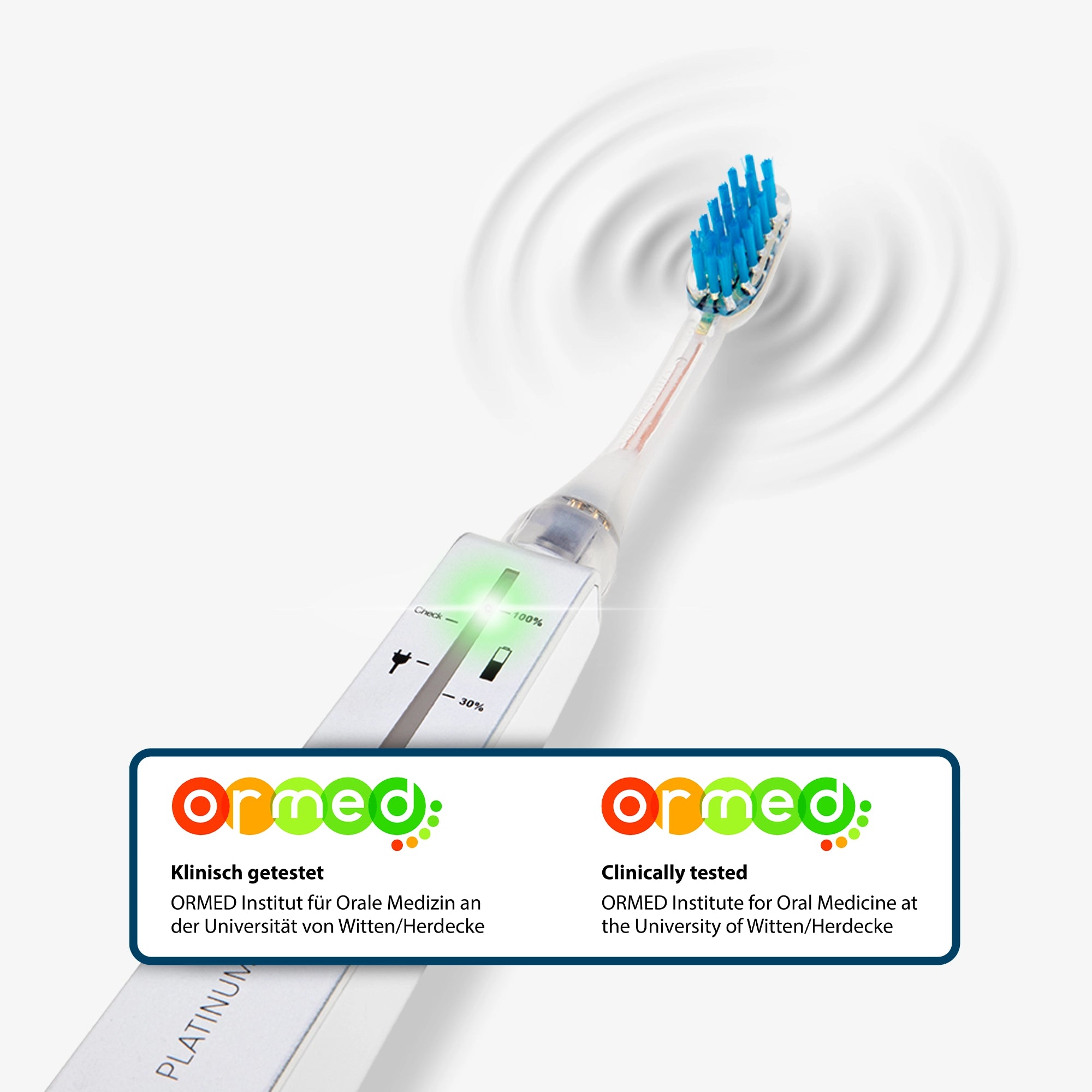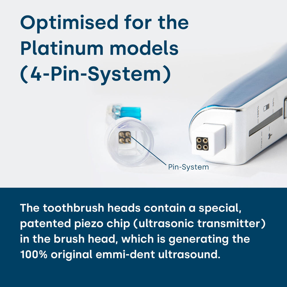 Ultrasonic technology is revolutionizing the way you clean and care for your teeth. The emmi-dent Platinum is the first generation of emmi-dent ultrasonic toothbrushes with a 4-pin system. This means that the emmi-dent Platinum generates up to 4 ultrasonic pulses per second.