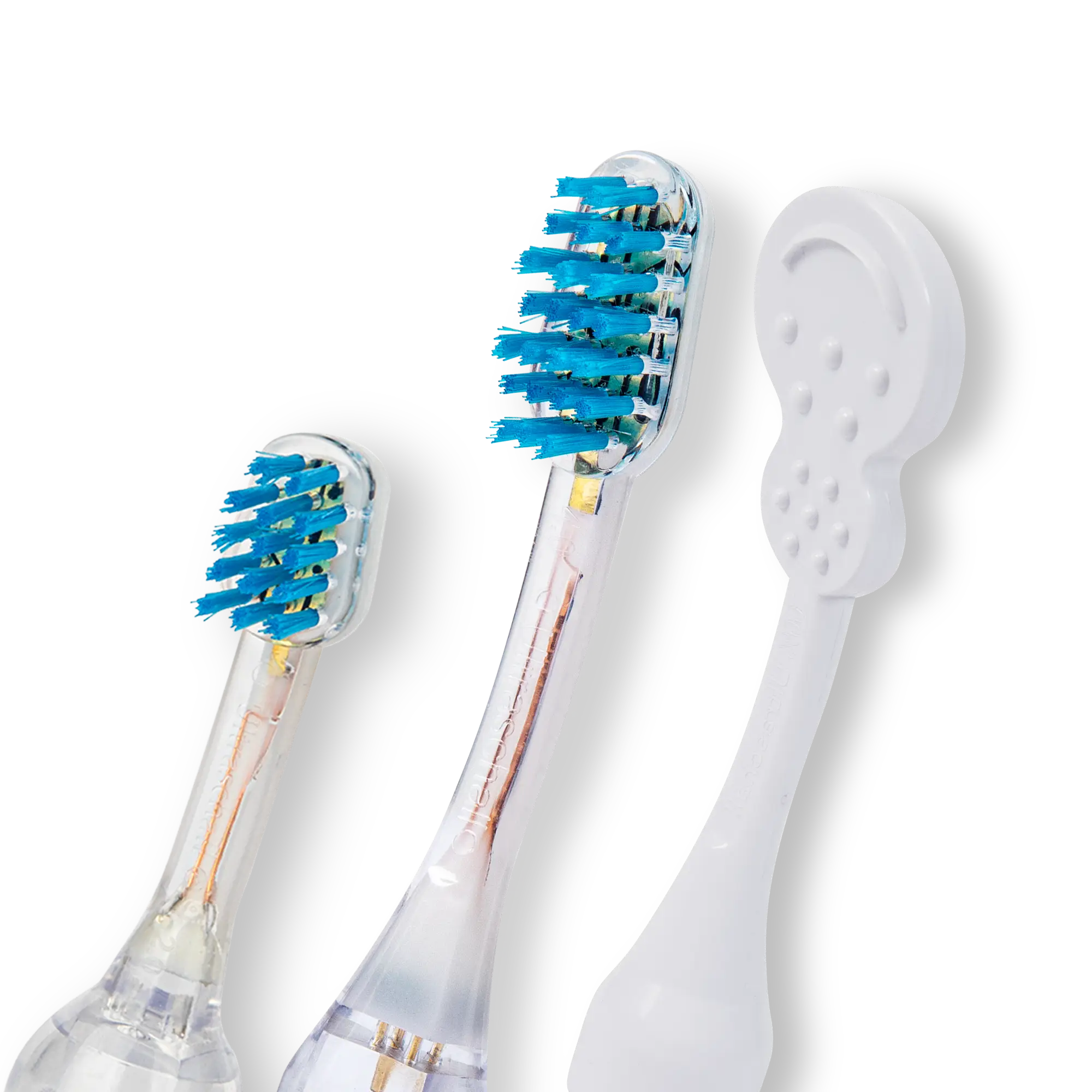 These heads are designed with smaller bristles to effectively clean even hard-to-reach areas. With their compact size and precise cleaning capabilities, the small heads ensure thorough oral hygiene for children and people with small jaws/mouths, promoting a healthy and clean mouth. They are the ideal choice for parents who want to offer their children a gentle and effective cleaning experience, even in the most difficult areas of their mouth.