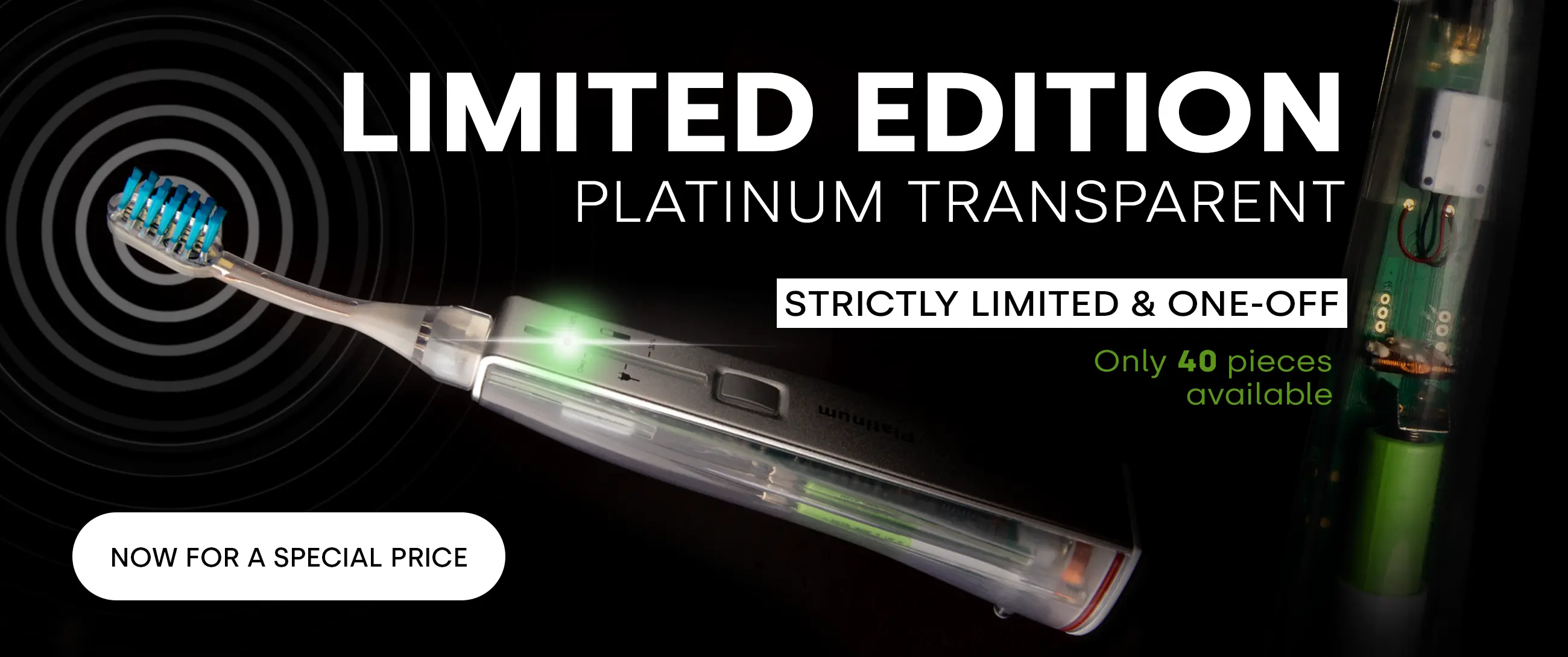 The gentle micro-cleaning action of the ultrasonic toothbrush revolutionizes tooth brushing. The virtually contactless ultrasonic technology prevents excessive pressure. Ultrasonic dental care eliminates the need for strenuous back-and-forth brushing. Brushing without scrubbing is the motto here!